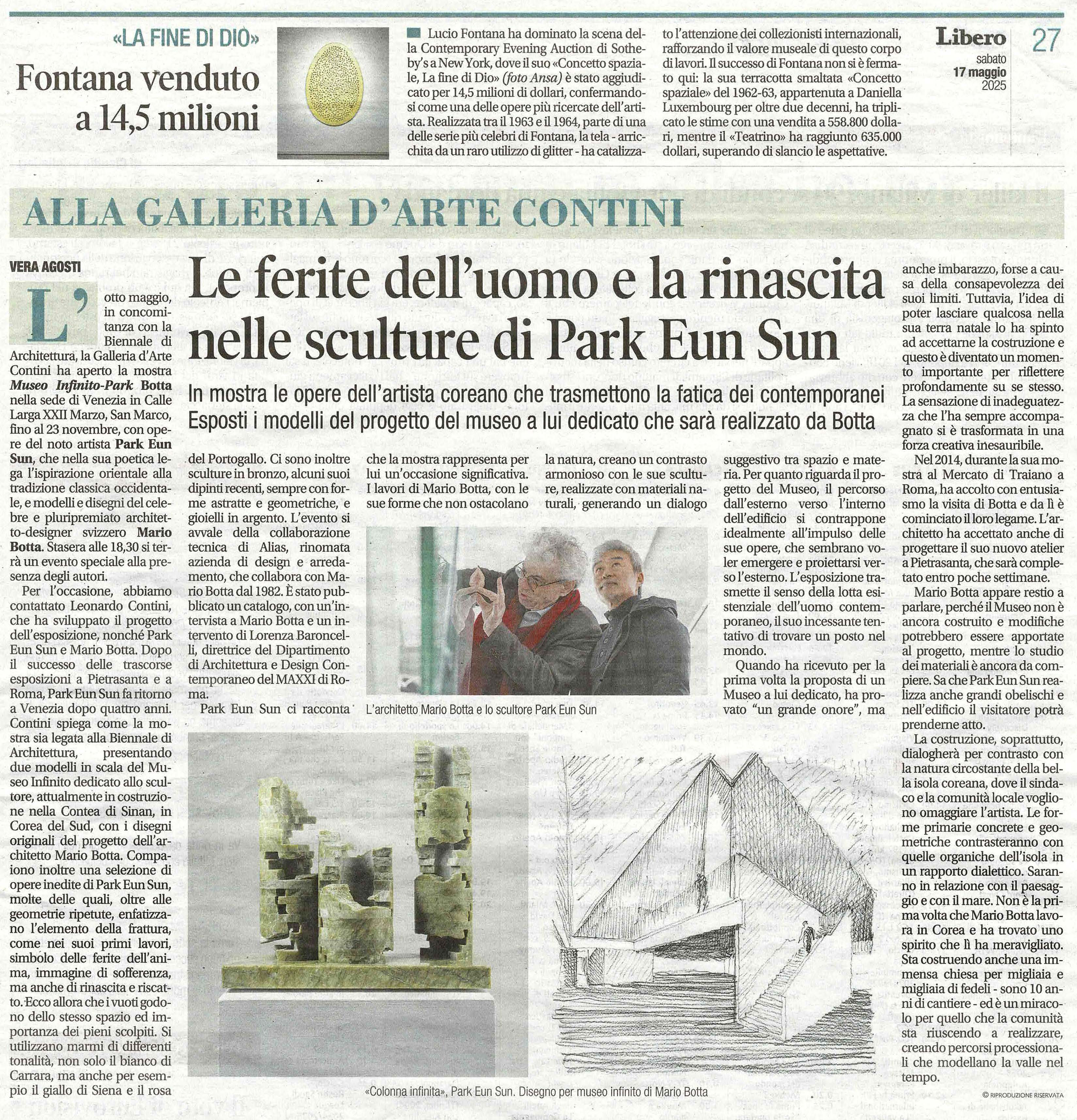 The wounds of man and rebirth in the sculptures of Park Eun sun. Models of the museum project dedicated to him to be realised by Botta are on display.