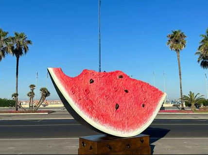 In Piazza Mazzini 'Valle Marineris' by Julio Larraz: a piece of watermelon that is also an interpretation of the cosmos